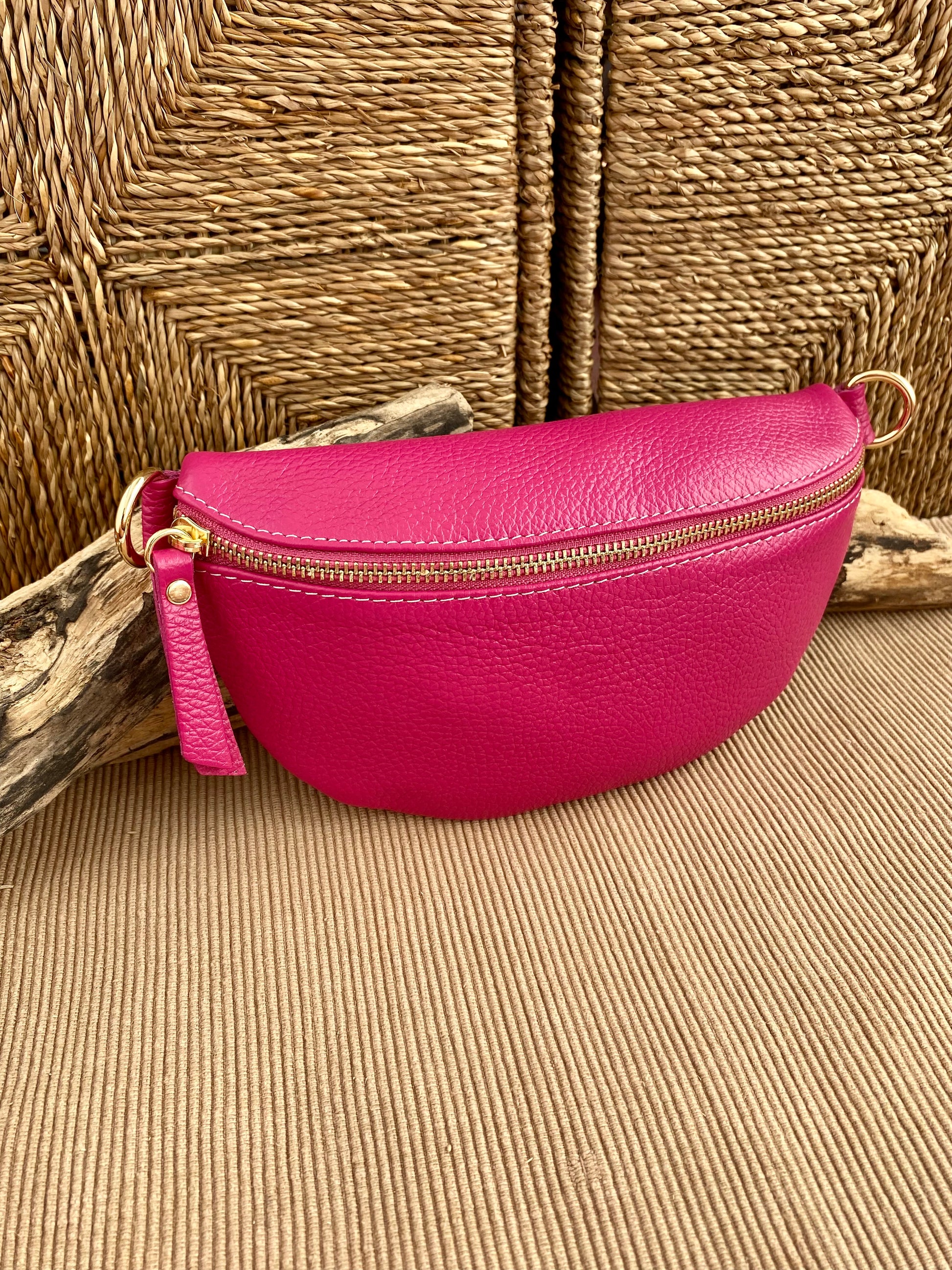 - Maximum versatility: Adjustable and interchangeable leather strap. Wear it crossbody, over the shoulder, or around the waist.